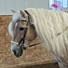 Buttercup is an adorable 2012 Haflinger mare standing at 12 hands. She is strong and stout and close to the ground, making her ideal for therapy and new riders. Don’t let her height fool you, she is very confident and likes to have her way in the herd so she often hangs out with Moses and Amigo. Moses is the only horse she does not intimidate. We are so fortunate to have her with her beautiful locks of golden hair that everyone loves to braid. She is loved by all who get to groom, lead and ride her.